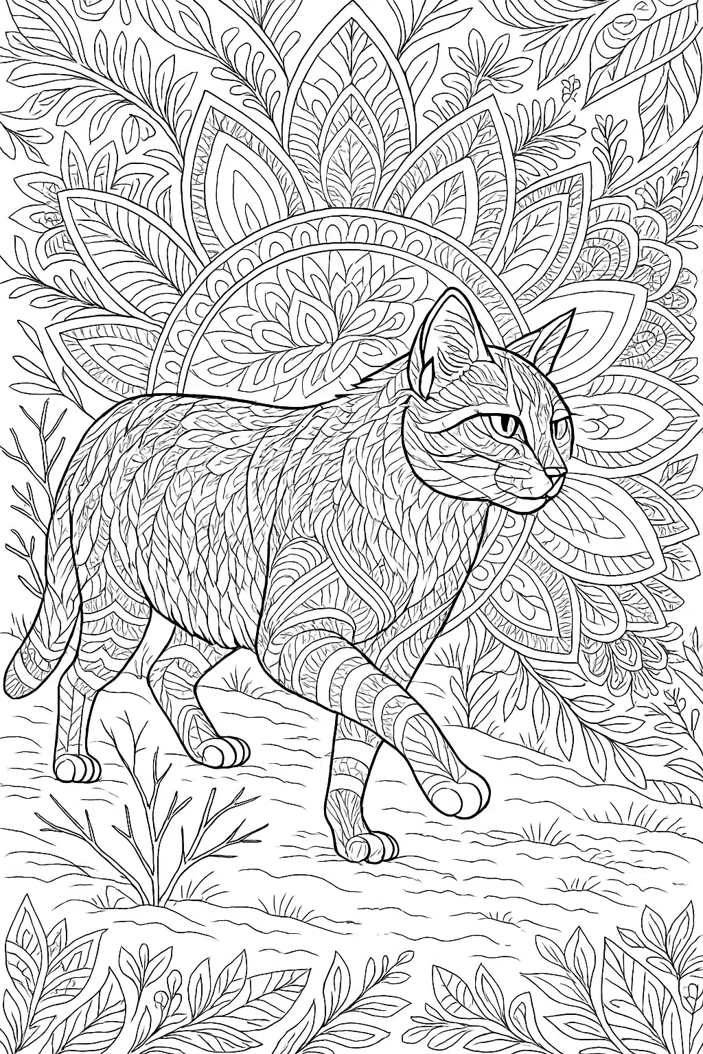 Ця розмальовка нтистрес кіт на природі поєднує гармонію дикої краси та спокій мандал. Витончені лінії створюють складний, але медитативний орнамент, що допомагає розслабитися та відчути внутрішню рівновагу. Розфарбовуючи кожну деталь, ви ніби занурюєтесь у споглядання природи — тихе, тепле й заспокійливе. Ідеально підходить для вечірнього відпочинку або арт-терапії.
