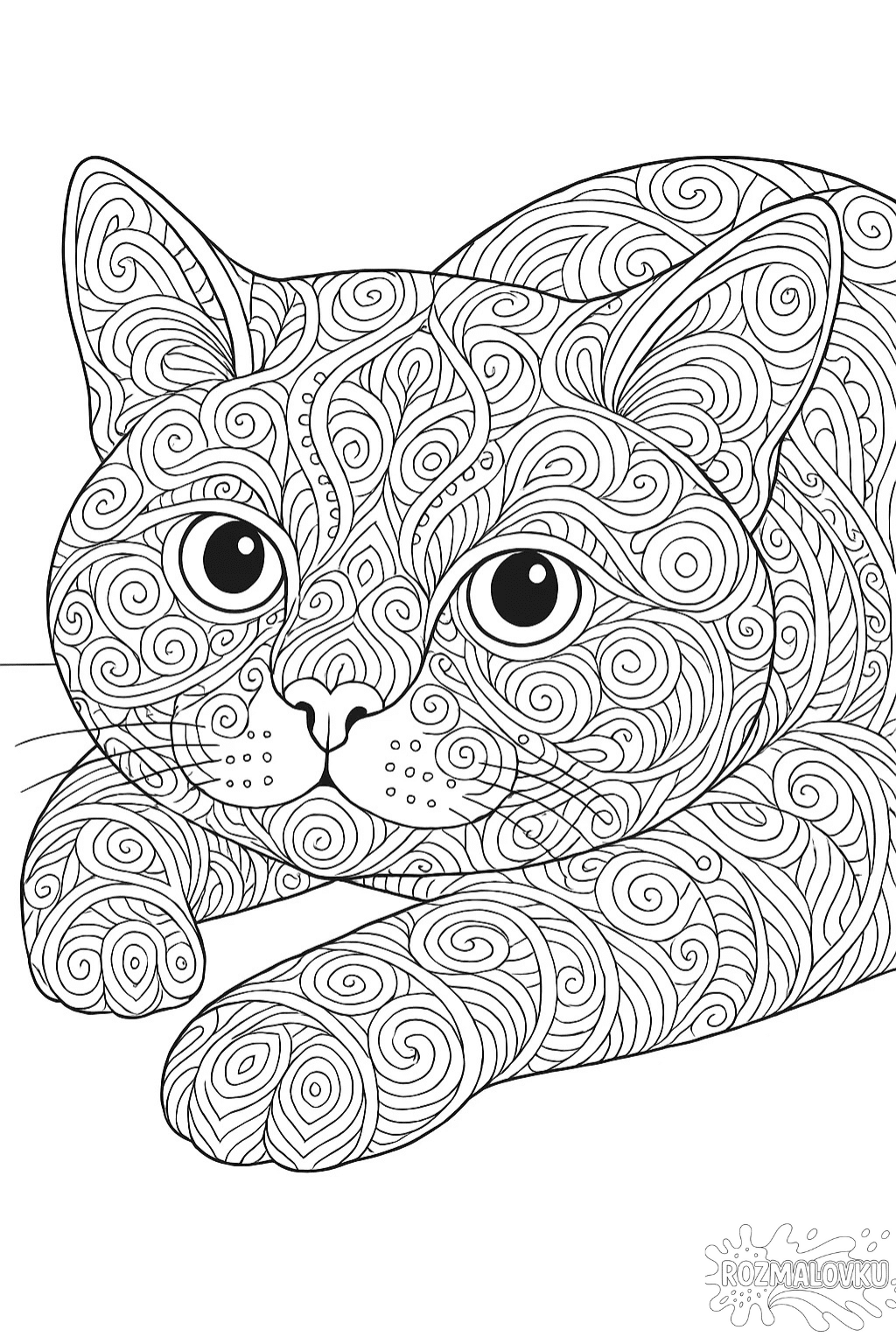 Ця розмальовка антистрес кіт з візерунками спіралей створена для тих, хто хоче знайти спокій та натхнення. Десятки плавних ліній і закручених орнаментів допомагають зосередитись, заспокоїти думки й зануритися у творчий процес. Кіт виглядає розслаблено та гармонійно — і саме таким стає настрій того, хто розфарбовує цю картинку. Ідеально підходить для дорослих і старших дітей, які люблять складні малюнки й бажають розвинути увагу, уяву та внутрішню рівновагу.
