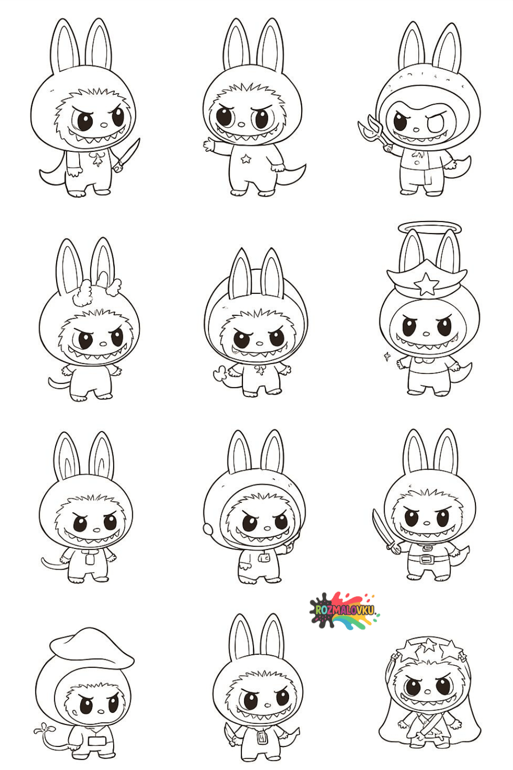 Розмальовка дев’яти міні Лабубу — це чудова можливість для дітей проявити свою фантазію та креативність. На картинці зображено дев’ять маленьких Лабубу, кожен із яких має свій вираз та настрій. Розфарбовуючи їх у різні кольори, дитина може створювати унікальні поєднання та власні історії. Така розмальовка допомагає розвивати дрібну моторику, уважність і уяву, дарує позитивні емоції й робить творчий процес веселим і захопливим.