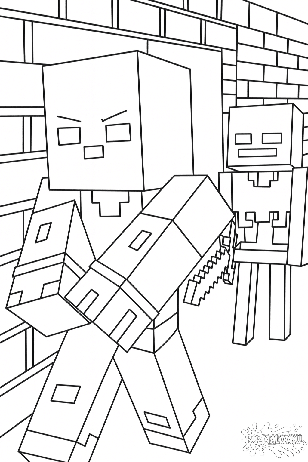 Розмальовка Майнкрафт скелет та зомбі створена для справжніх шанувальників кубічного світу. На малюнку зображена динамічна сцена, де герой стикається з небезпечними мобами — скелетом і зомбі. Завдяки простим, чітким лініям розфарбовувати малюнок легко і цікаво навіть дітям молодшого віку. Ця розмальовка допоможе розвивати творчість, уважність і фантазію, даруючи відчуття пригод у популярній грі Minecraft.