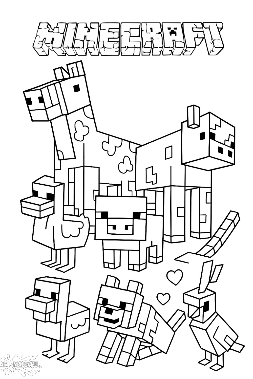 Розмальовка Майнкрафт тварин подарує дітям можливість розфарбувати улюблених мешканців кубічного світу: корову, вівцю, курку, коня, кота, кролика та папугу. Кожна тварина виглядає мило та цікаво, що робить цю розмальовку чудовою для розвитку фантазії та уваги. Діти можуть придумати власні кольори для ферми, створюючи яскраву ігрову атмосферу. Ідеально підходить для хлопчиків і дівчаток, які люблять Minecraft та тварин.