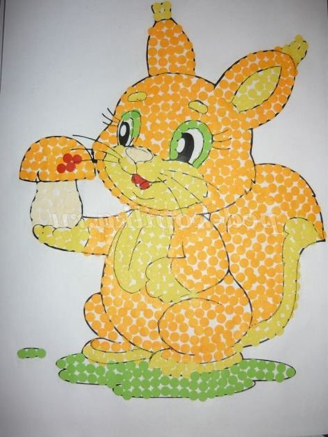Крапкова техніка здається простою, але вона дуже корисна для уважності й терпіння, тому її часто рекомендують як розвиток дрібної моторики через малювання. Ватна паличка стає «мікропензликом»: дитина ставить крапки й поступово заповнює контур або створює орнамент. Так добре виходять квіти бузку, грона ягід, луска рибки, святкові гірлянди, конфетті чи абстрактні візерунки, а старші діти можуть ускладнювати завдання й робити градієнти з кольорів. Цікаві техніки малювання для дітей цінні тим, що дають прогнозований результат: крапка за крапкою малюнок росте, і дитина бачить свій прогрес. Це підсилює впевненість, бо навіть якщо дитина не любить «малювати лінії», у крапковій техніці вона все одно створює повноцінну картину.