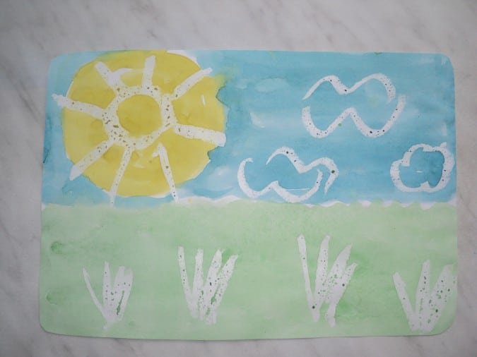 Малювання воском — «чарівний» спосіб, який завжди викликає захват, бо зображення проявляється ніби з секретом. Спочатку дитина малює свічкою по білому папері: лінії майже непомітні, але вони є. Потім зверху наноситься акварель або добре розведена гуаш, і фарба не лягає на воскові ділянки — з’являються приховані контури, сніжинки, хвилі, зорі чи візерунки. Такі художні експерименти для дошкільнят і молодших школярів корисні ще й тим, що дитина вчиться чекати результат і бачити причинно-наслідковий зв’язок: «тут віск — тут фарба відштовхується». Це один із тих креативних прийомів, що допомагає зняти напругу, бо «ідеально» тут не потрібно — краса з’являється сама, і дитина відчуває: у мене виходить.